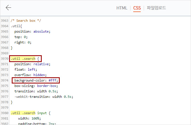 .util .search 클래스의 background-color:#fff; 부분을 삭제하고 저장하면 됩니다.